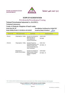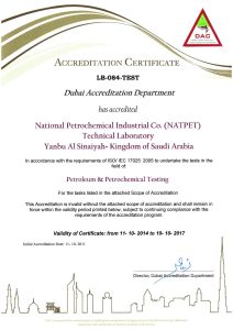 NATPET has acquired accreditation against ISO 17025:2005 – laboratory test reliability and calibration since October 2011. The certification is accredited by the Dubai Accreditation. The renewal of certification audit was successful completed on dated December 14, 201 and continuity has been recommended.