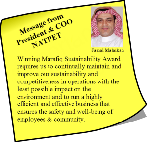 NATPET has been selected for the best sustainable company by MARAFIQ on the basis of followings: