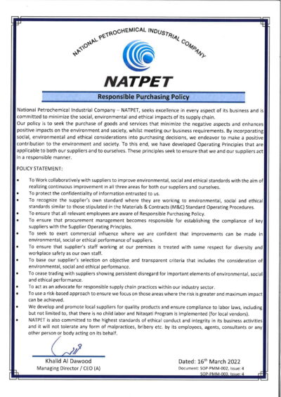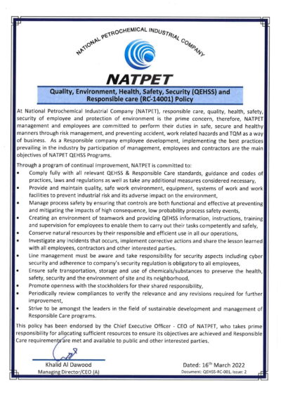 Quality, Environment, Health, Safety, Security & Responsible Care 14001